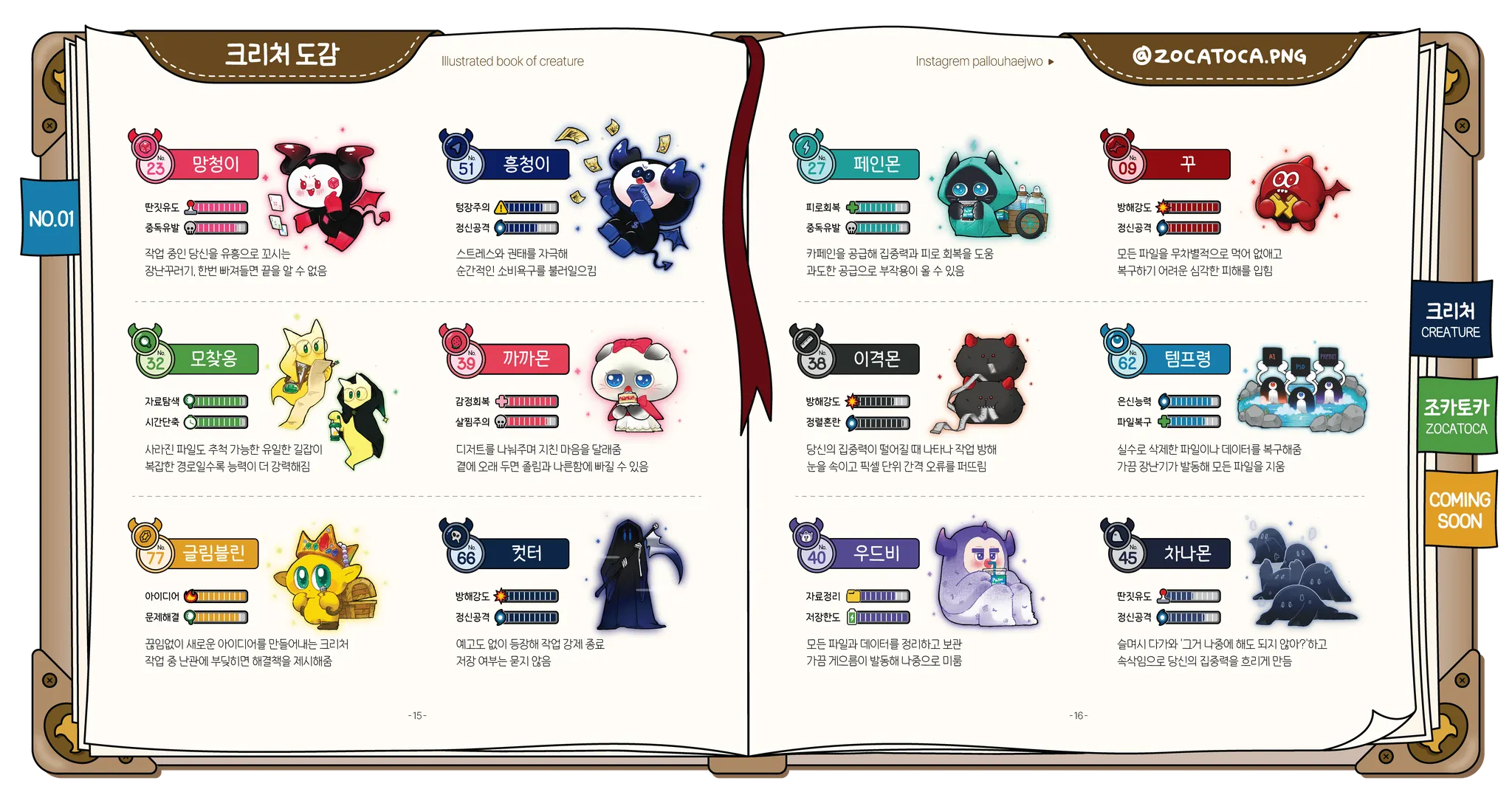 크리처와 함께 디자이너 4인방의 좌충우돌 일상을 담은 인스타툰